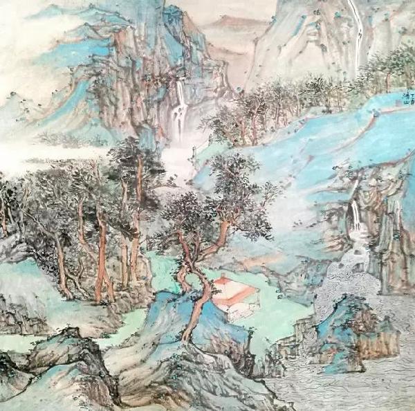 而朱国栋的画作则具有宁静淡雅的文人气息。他笔下的山水唯美细腻,意境悠长,既有写意的飘逸感,又兼有工笔的细致入微。“以线立形,以形达意”,画家超然物外的性情和写意山水画大气合而为一,给参观者带来自然恬淡的感受。