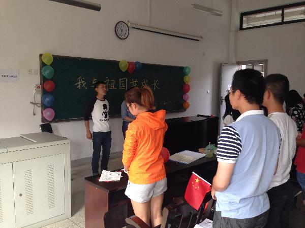 六十五载风雨历程,六十五载成就辉煌。各个班级经过精心策划,给大家展现了全员参与、形式多样、内容丰富,充分表达全体学子爱国热情和奋发努力的精神风貌的班会活动。班会通过奏国歌,全体同学庄严肃立,齐声合唱,唱出了祖国历经艰难而不衰的坚韧和为了祖国的昌盛而拼搏的决心;采取主题讨论、歌唱祖国、诗歌朗诵等新颖多样的形式,切合我与祖国共成长的主题,充分展现同学们的全面发展与积极向上的心态;通过观看相关PPT、励志视频,充分调动了全体员工参与班会的积极性,气氛热烈、深入人心,达到教育目的,富有实效;各班班委及时对班会进行总结,活动圆满结束。