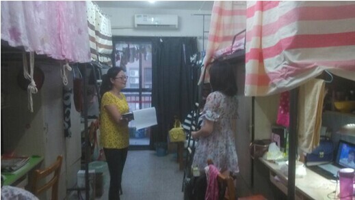 此次深入走访寝室持续了一个半小时,基本涵盖了2012和2013级的全体员工,让刚刚返校的同学们深切感受到了系部对他们的关心,为营造温馨和谐的寝室环境打下了良好基础。