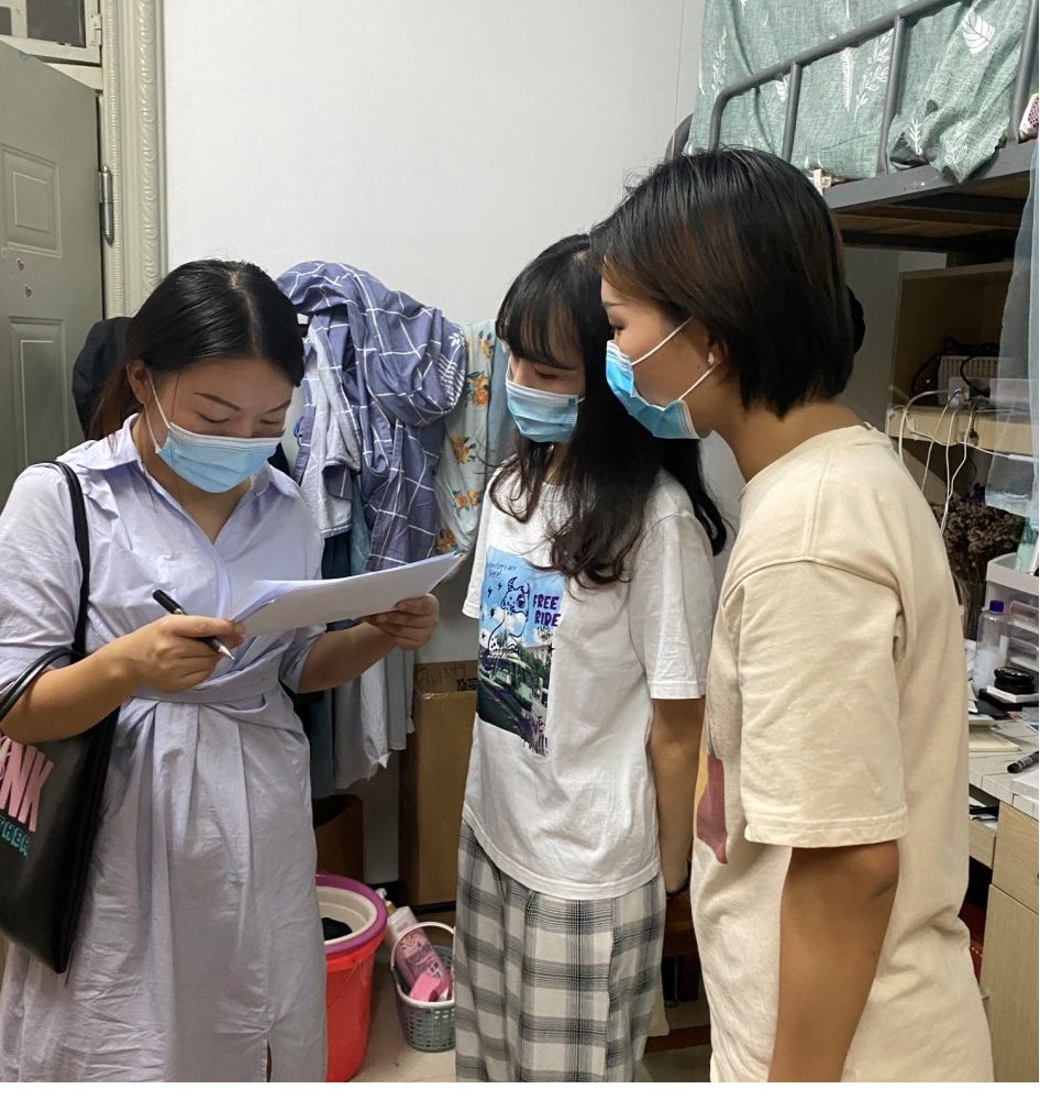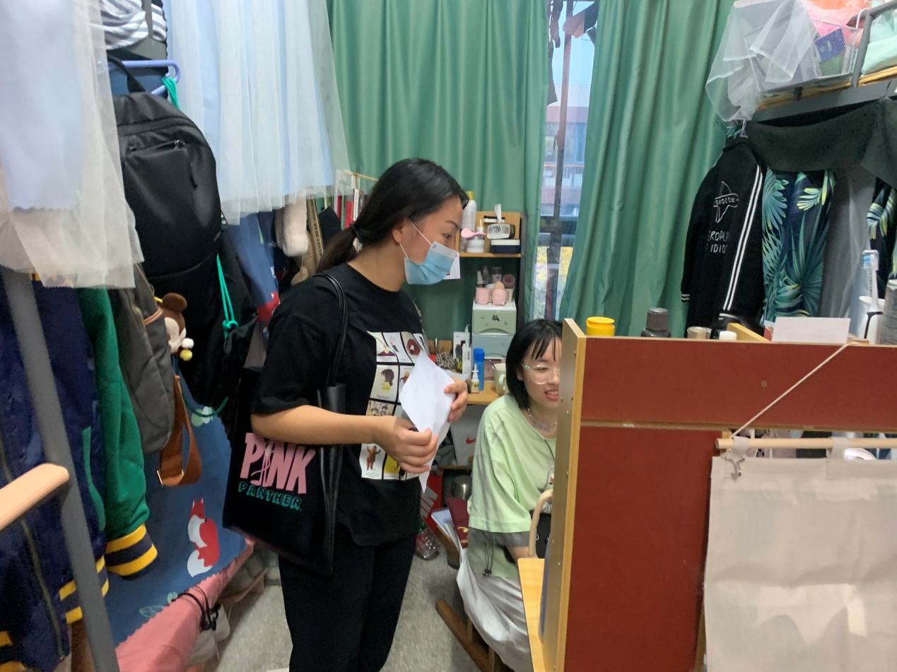 按照分批返校的原则,我系在校生陆续返校,开启了久违的校园集体生活。为了解大家返校后学习生活状态以及思想动态,9月6日,中国画系辅导员曾艳老师和涂梦娟老师带携员工会生活部的部员们走访员工宿舍。