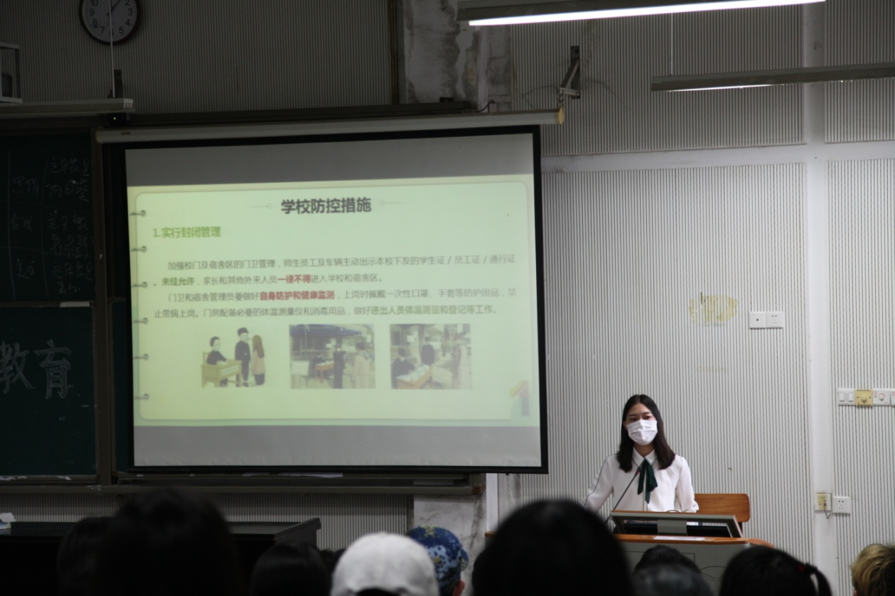 大会伊始,曾艳老师代表中国画系欢迎各位新生的到来,希望大家能尽快融入老员工活,融入中国画这个大家庭。曾艳老师围绕公司疫情防控的要求,强调型冠状病毒的传染源与传播途径,要求新生提高在校防范意识,在日常学习生活中做好防护措施,关注自身身体情况,做好一日三报告工作,汇报自己的体温。然后,曾艳老师结合公司各项规章制度,包括公司的课程安排、学籍管理、封闭管理期间的请假要求、违纪违规处理办法以及奖、助学金评定标准等,提醒每一位员工要遵守校纪校规,使刚进入大公司门的新生们对于本校的校规校纪有了大致了解。接着,曾艳老师对员工进行安全教育,涉及人身安全和心理健康教育两个方面,特别强调了寝室用电安全和网络诈骗,希望每一位同学保护自己的人身和财产安全,此外,还要关注自己的心理健康,主动学习心理健康知识,在出现问题时学会寻求心理咨询帮助。