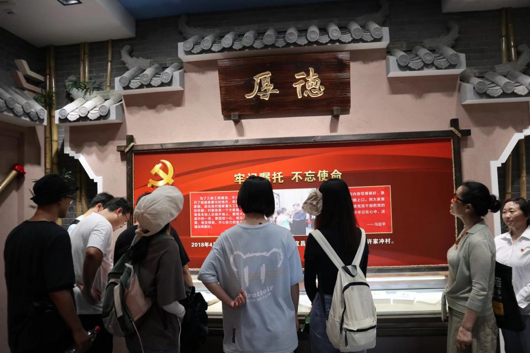 师生们在许家冲村党员群众服务中心,聆听了渔鼓调说唱《党员公约》,参观了便民洗衣池、村史馆、污水处理厂,以及家风传承地“望家祠堂”,全面了解移民新村新风貌和乡村振兴新成果,领会习近平总书记“共抓大保护,不搞大开发”的生态文明思想。