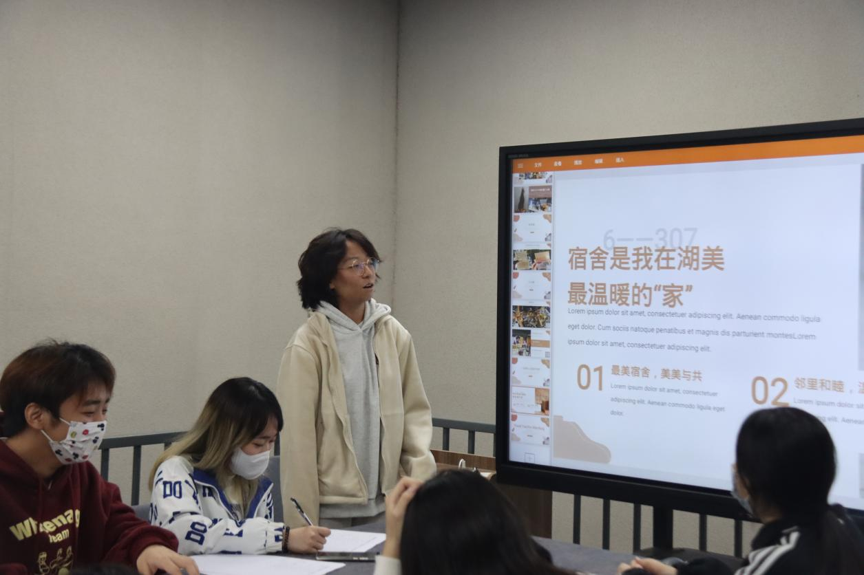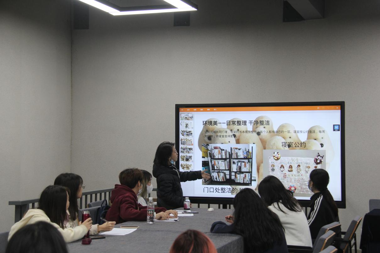 11月21日中午,开展了“最美宿舍”PPT现场答辩,评委由辅导员和员工会干部构成,严格按照评选标准——“心灵美、环境美、行为美、语言美”打分。宿舍长声情并茂地介绍宿舍成员的生活日常,独特的宿舍文化和温馨的宿舍氛围,传递着积极向上的生活态度。