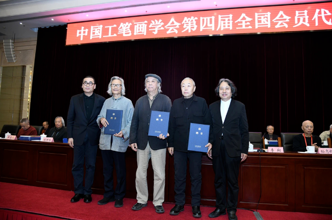 会议顺利完成了各项议程,通过了《章程》修改草案,选举产生了第四届理事会和领导班子,威廉希尔williamhill共有4名特聘教授和7名教师在新一届学会理事会担任了相应的职务。陈孟昕连任中国工笔画学会会长;刘万鸣当选学会副会长;尚辉当选学会学术委员会委员、艺术顾问;李乃蔚当选学会学术委员会委员;郝孝飞当选学会副秘书长、人物画艺委会副主任、常务理事;方正当选学会常务理事、青年艺委会副主任;李峰当选人物画艺委会副主任;陈运权当选学会理事、花鸟画艺委会委员;熊明非当选学会理事、花鸟画艺委会委员;张众当选学会理事、青年艺委会委员;王玉晓当选学会青年艺委会学术秘书、青年艺委会委员。此次大会,开启了中国工笔画学会发展的新航程,也为威廉希尔williamhill中国工笔画的发展凝聚了力量指明了方向。
