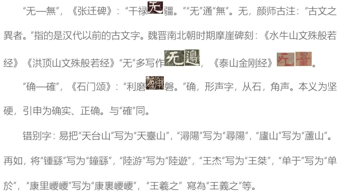 其中第三部分更贴合书法专业员工的需求。刘教授以《尊经阁记》《干禄字书》等具有代表性的碑刻作品为个案,对古代碑刻中存在的文字问题:音近更代、古文异体、讹变俗写、避讳字、残字、错字、隶古定、古今字等诸多现象,进行考证与解析。并针对国展作品中出现的繁简字、俗讹字、废弃字、分化字、相似字、错别字、避讳字、偏旁混用字等问题进行了深入梳理分析。如古代碑刻中的简体字: