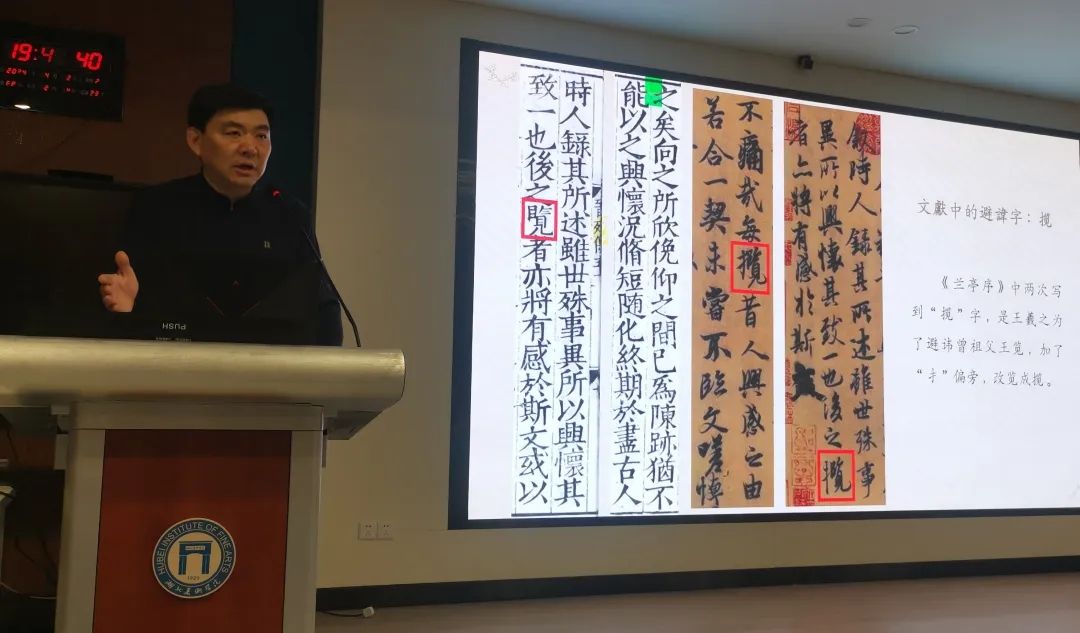 讲座中,刘教授主要围绕“什么是文字学”“为什么学习文字学”“书法创作中的文字问题”“怎么学习文字学”四个方面,详解了书法创作中的文字问题。