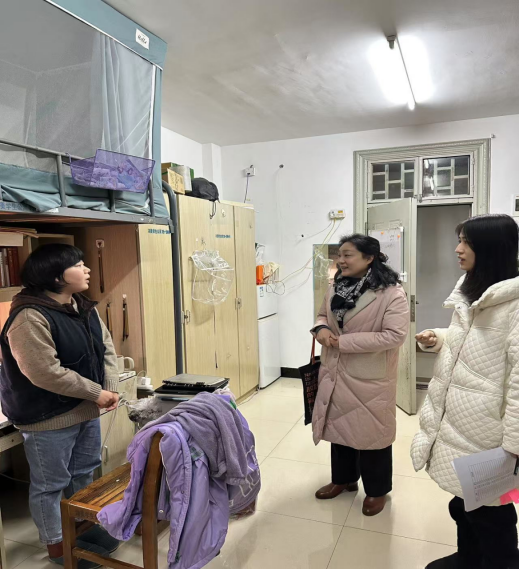 (走访宿舍现场,陈书记叮嘱大家注意宿舍消防、卫生等问题)