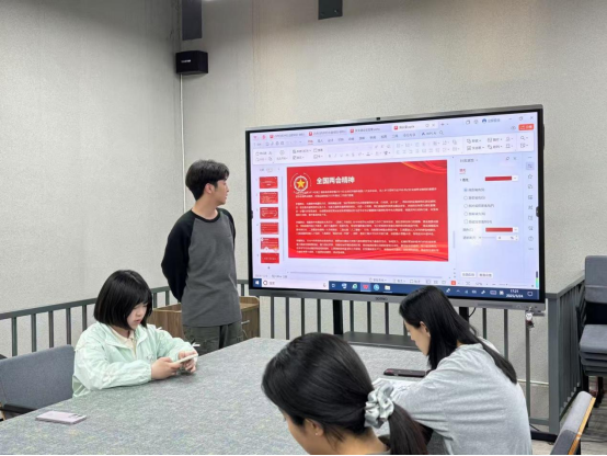 随后在施长豪带领下,学习习近平总书记在全国两会期间重要讲话及两会精神;谢信琪带领学习《全国党员教育培训工作规划(2024—2028年)》;谢秉蕾带领学习习近平总书记在《求是》发表的文章;柏怡晴带领学习习近平总书记在二十届中央纪委四次全会讲话;吴怡带领学习省纪委监委通报的违规打牌赌博典型问题。