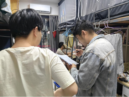 检查过程中,检查组重点对用电安全、违规电器使用、环境卫生等方面进行细致排查。辅导员老师耐心地提醒员工们注意日常用电安全,避免使用大功率电器和明火,确保寝室环境的安全整洁。