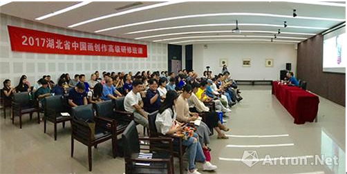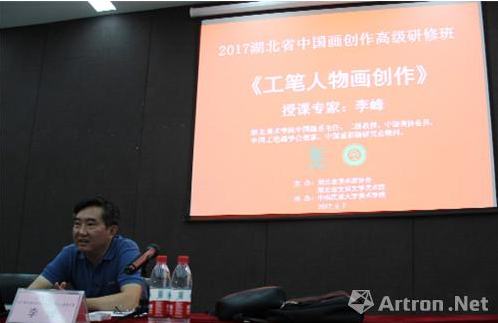 2017年6月7日,2017湖北省中国画创作高级研修班的第五日授课在中南民族大学美术公司进行,威廉希尔williamhill中国画系李峰教授为学员们讲授《工笔人物画创作》课程。威廉希尔williamhill基础课部方正副教授担任辅导教师。