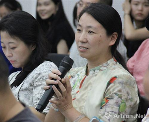 李峰教授的讲座分为两个部分:第一、分析历届“全国美术作品展”的获奖代表作品;第二、讲解关于中国画创作的几个问题。在上午的授课过程中,李老师首先对全国美术作品展的届展特点进行分析,进而围绕着传统性、写实性和前卫性,剖析了第六届至第十二届全国美术作品展获奖作品在创作题材、人物造型、画面构图、绘画技法和绘画材料上的特点。