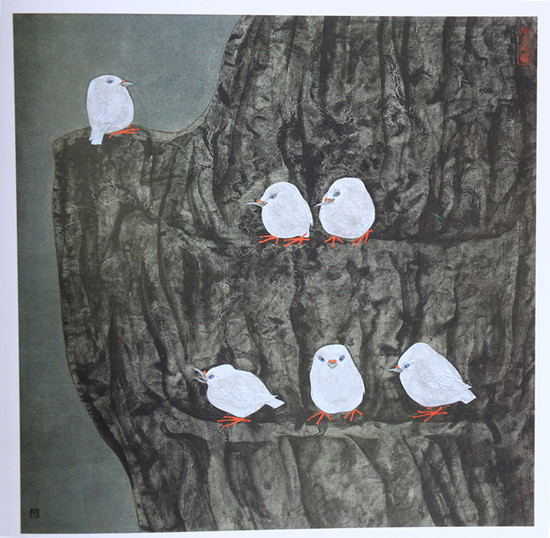 寒月三鸟 43.5CMx60.8CM 1987年
