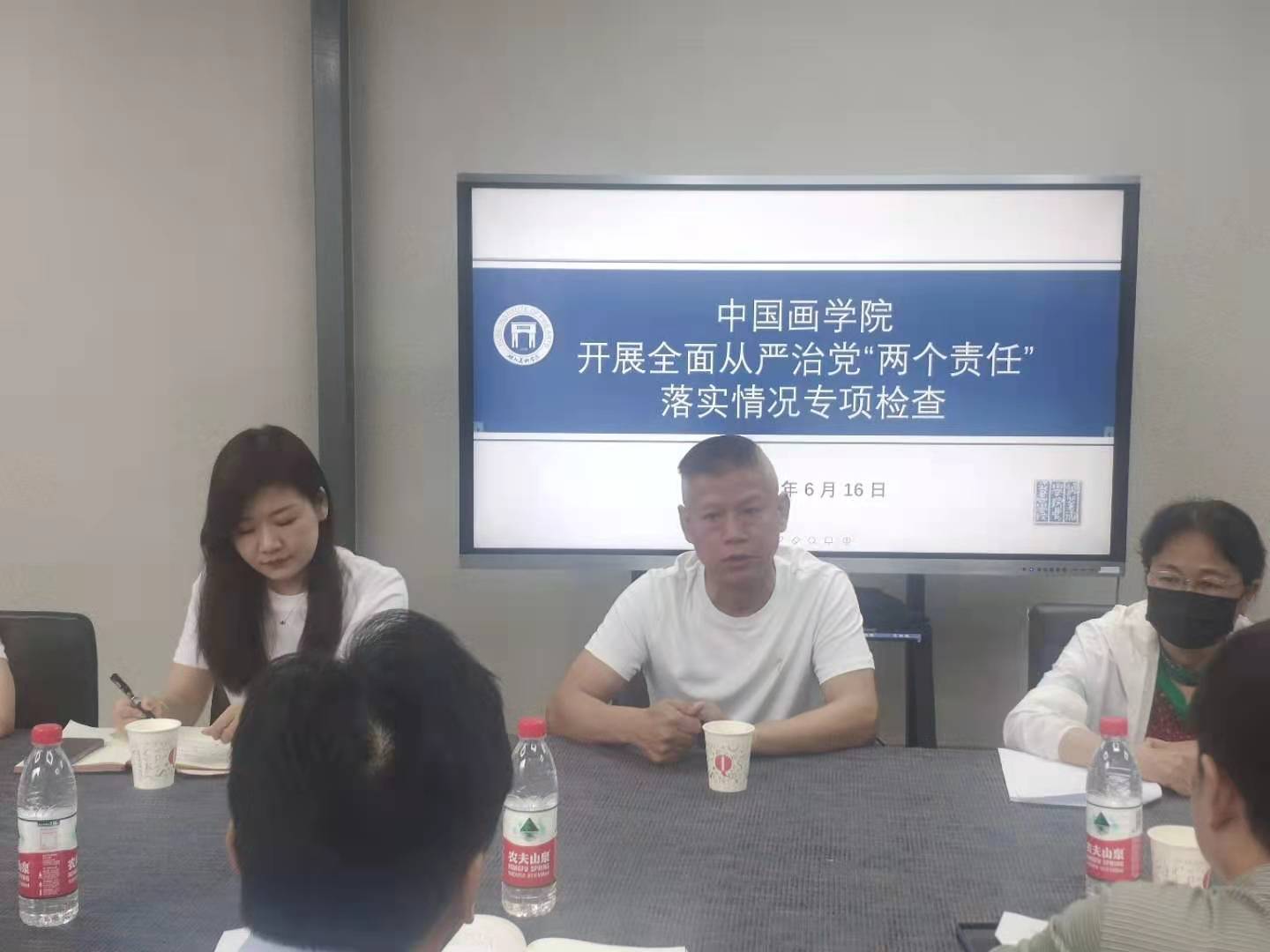 中国画学公司曹汉萍书记就意识形态工作责任制落实情况作出汇报,包括政治理论学习、师德师风建设工作、教师思想政治工作、媒体平台管理、报告(讲座、研讨会)管理等。检查组检查了相关材料,检查组根据检查的结果,对公司的意识形态工作提出了表扬,同时也提出了几点建议:一是学习会议记录的会议名称需要更加明确,二是学习内容需要围绕红色基因进行,加强政治课程方案和主干课程线路的制定。