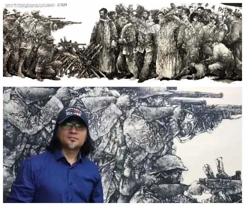 郝孝飞教授与万国龙老师共同创作《收回英租界(汉口‘一三惨案’)》