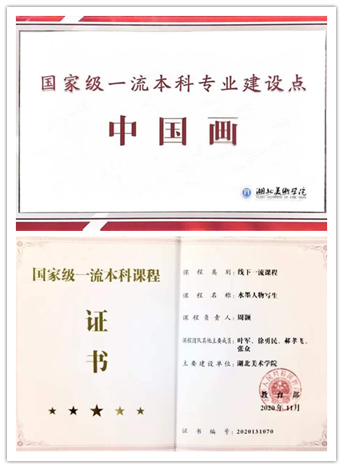 省级一流本科课程—肖蓝教授主持的《工笔人物画(半身像写生)》课程;张永康副教授《花鸟画3(写意花鸟画)》课程