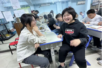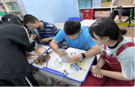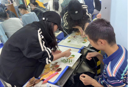 活动期间,志愿者教孩子们如何摆放树叶,使用喷壶并完成画作,培养了孩子们的动手能力与创造力。在上课的时候,虽然他们的理解能力有限,但是也都尽力地去学习。志愿者们也耐心地去引导他们,尽可能地用他们能理解的方式去教学。