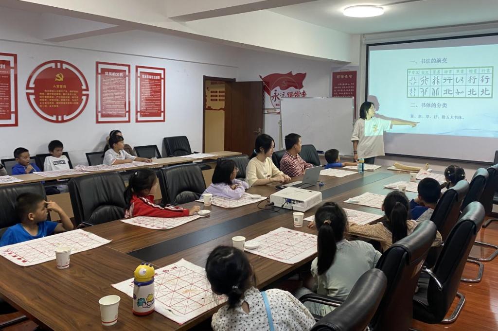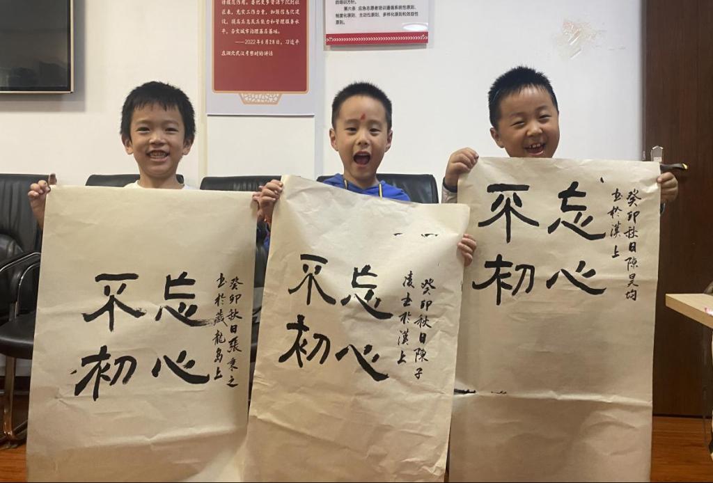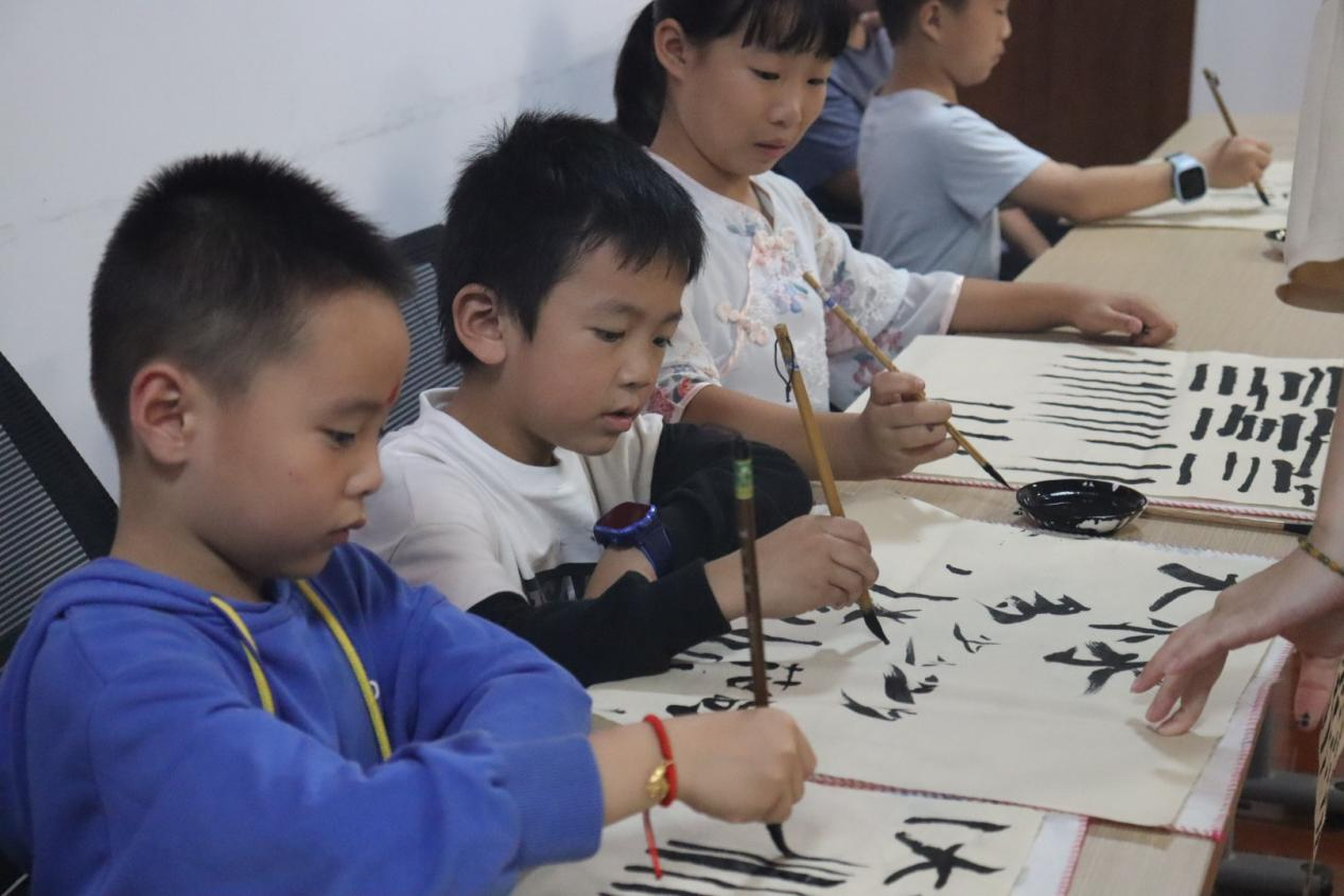 坚定文化自信从少年儿童抓起。志愿者们利用周日休息时间来到社区党员活动室,为社区少年儿童传播中华优秀书法文化。从书法内涵和书体演变两个角度切入课堂,详细介绍了书法的发展历程和笔墨纸砚台等书法基础知识。为了激发小员工学习书法的积极性,专门设计了问答环节,经过志愿者的引导,小员工们能当场准确背诵出五大书体等基础书法知识的具体内容,充分调动了小员工的学习兴趣。当进入动手实践环节,志愿者们根据小员工的书法基础,耐心指导他们如何正确握笔、开笔、运笔、蘸墨、舔墨及坐姿。在志愿者老师的启迪和帮助下,小员工们全神贯注,细心观察模仿,进行了“横画”“竖画”“点画”等基本书法笔画的学习练习,体验了书法之美妙,感悟了书法之魅力。