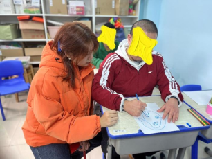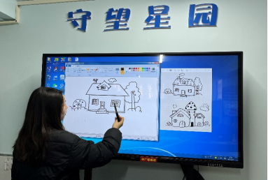 简单的与园长沟通后,便开始了绘画教学,志愿者们开展一对一教学,让他们选好自己喜欢的颜色,帮助每一位“小星星”画好属于自己的房子。
