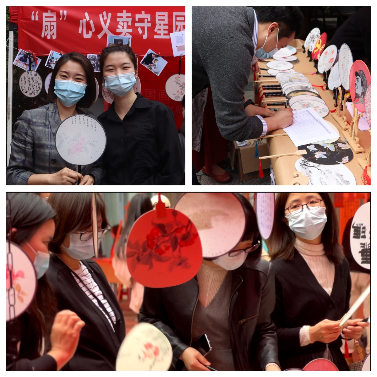公司党委书记鲍清芬、党委常委朱丽莎下基层参观体验员工活动,积极参加“‘扇’心义卖守星园”的募捐活动,相关院系、职能部门负责人及公司师生也纷纷参加了‘扇’心义卖和“鹅湖市集”募捐活动。春田志愿者将所筹“扇”款购置了画材和学习用具,定期前往“守望星园”表达湖美师生温暖“星孩”的“艺”举和“扇”心。