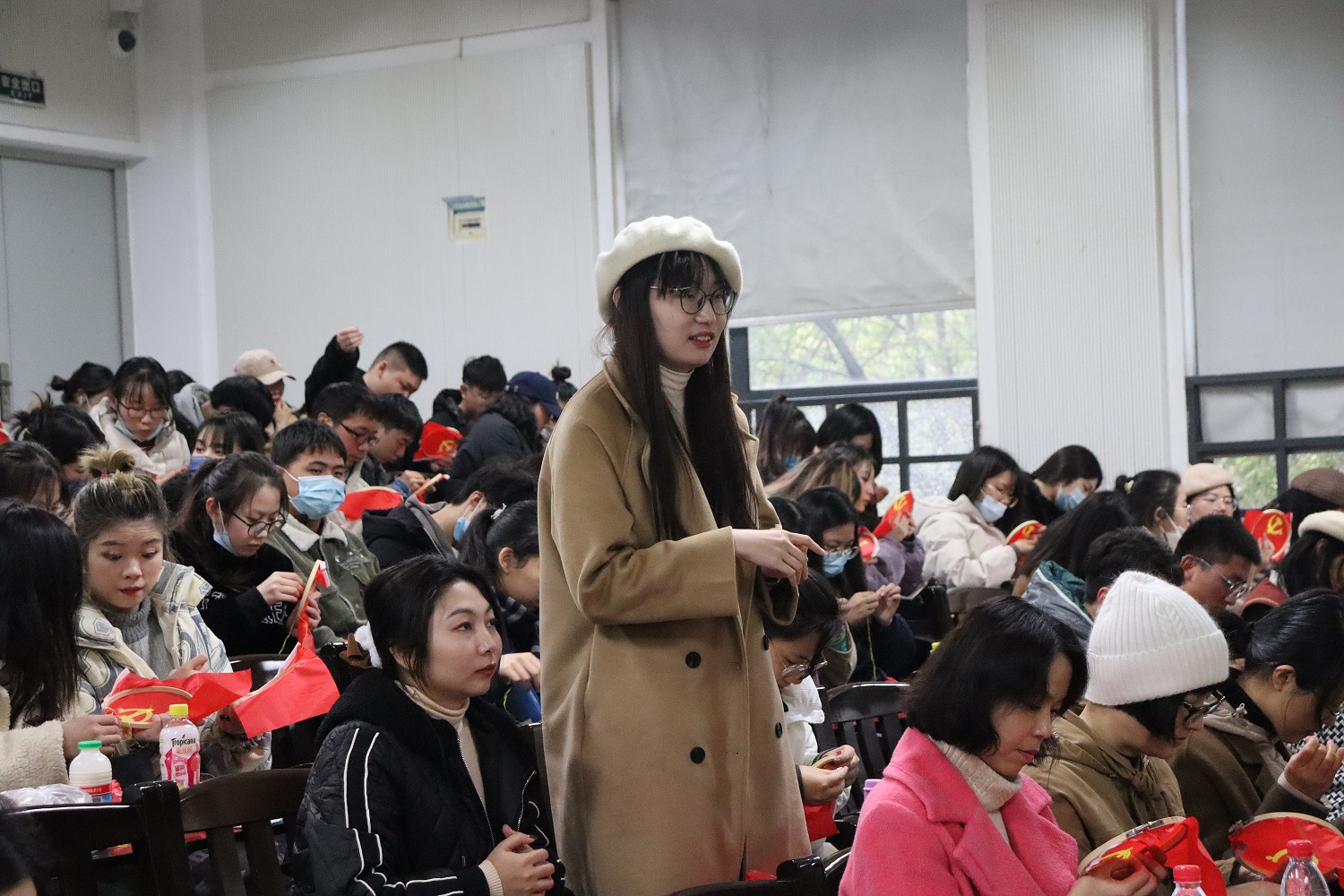 活动在全体师生起立齐唱《没有共产党就没有新中国》的歌声中拉开序幕,师生们一边唱红歌一边观看歌曲MV,屏幕上历历展示了从红船会议到建党100周年期间重要时间段的历史代表事件和英雄人物的画面,引导师生回顾中国共产党百年奋斗的光辉历程。歌声一停,同学们便进入即兴问答环节。有6名同学获得党史事件和英雄人物问答纪念奖,并由出席相关职能部门嘉宾为同学们颁奖。