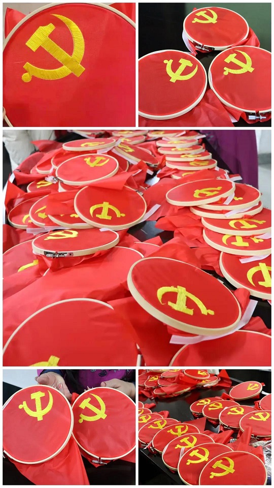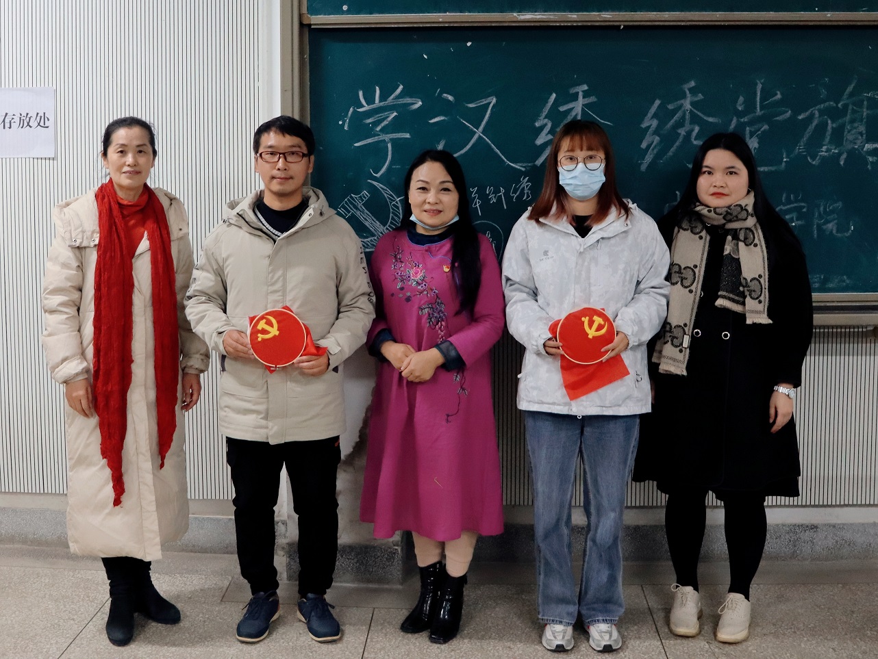 “绣党旗”是一件神圣而庄重的实践活动,师生们认真聆听黄春萍老师给大家做《汉绣的传承与创新》的专题讲座,渐渐对汉绣的发展历程和基本技法有了一定的了解和认知。不仅让师生感受到了湖北汉绣非遗文化的魅力,更增强了对汉绣非遗文化的自信和传承发扬的责任感。在黄老师的耐心示范指导下,师生们迫不及待地跃跃欲试,全神贯注、全心全意的沉浸在“绣党旗”状态中,师生们通过一针一线绣党旗的特殊方式,表达了对党旗的敬仰之心和爱党的真切之情。