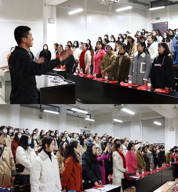 (全体师生起立齐唱红歌《没有共产党就没有新中国》)