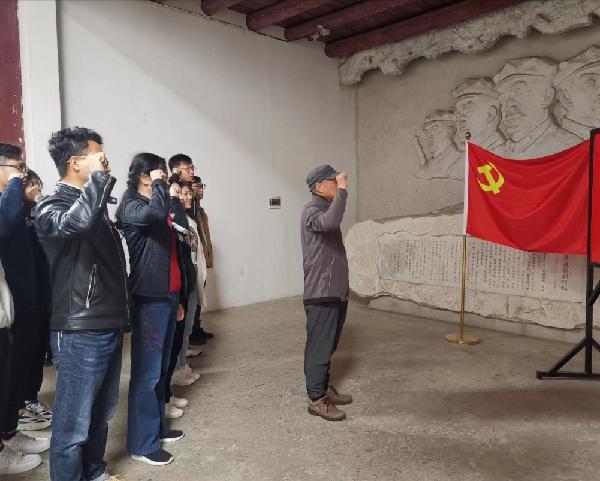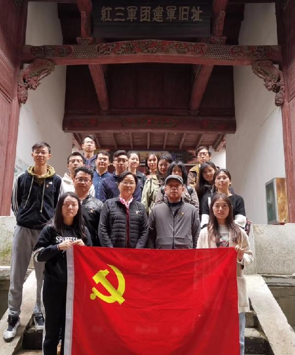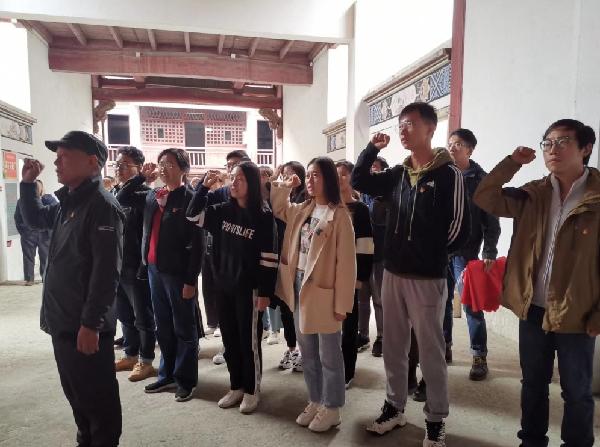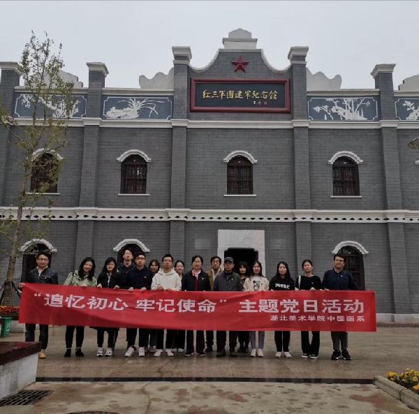 参观结束后,中国画系系主任、教师党支部书记叶军教授带领大家于红三军团建军旧址内进行重温入党誓词活动,全体党员面对党旗,握紧右拳,庄严宣誓。通过对入党誓词的重温,大家进一步牢记了身上担负的光荣使命,再次铭记了入党初心。