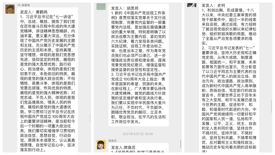 线上党日学习会议上,党员们积极发言,探讨关于文件的学习心得,共同分享了关于习近平七一重要讲话精神的感悟。