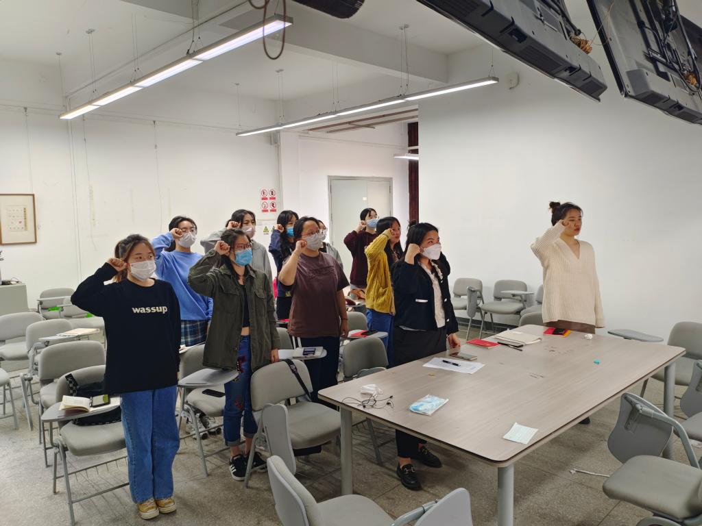 会上罗雅雯老师带领大家共同学习了党的二十大精神、党的二十大最新修订的《中国共产党章程》以及《中国共产党党徽党旗条例》相关知识。