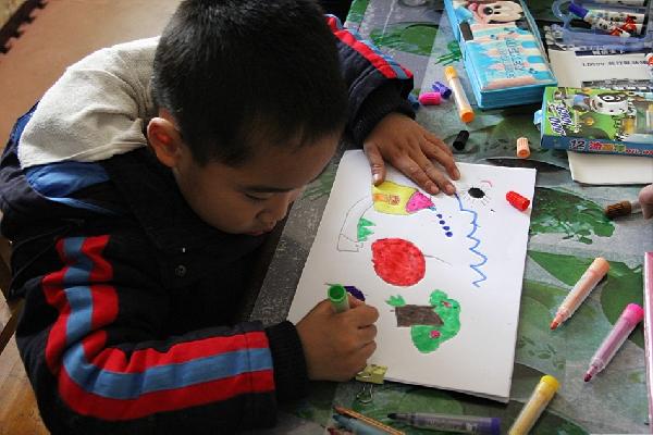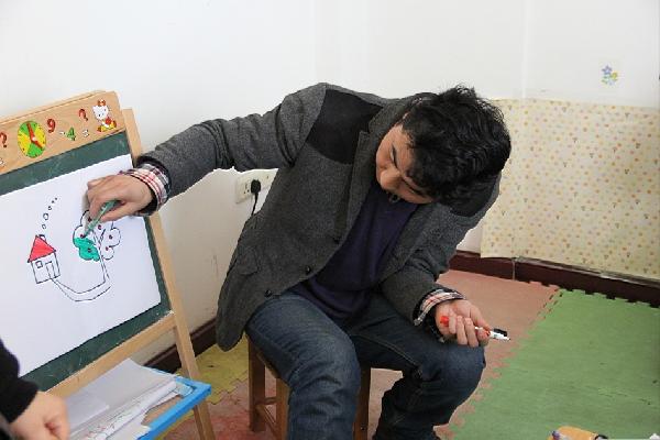 每天上午九点,志愿者准时来到自闭症儿童所在的培训中心。志愿者们与指导老师进行了一系列沟通交流,对人员调动,课程安排进行相关的协调工作。上午一般安排活动课以及舞蹈课。活动课主要是陪孩子们跑步,跳操,既可以加强孩子们的运动能力,也能让孩子们迅速进入到训练的状态;舞蹈课则是慢慢训练他们肢体的协调性,以及对音乐节奏感的把握,让孩子们能主动用眼观察,用耳倾听,用肢体模仿,从而促进他们的交流意识。下午的课程主要是美术课和游戏课。美术课主要是锻炼孩子们眼、手、脑的配合,训练孩子们的协调能力和大脑的接受能力,逐渐开发他们的想象力;游戏课主要是让孩子们对相互之间的配合能有所体会,学会与他人沟通合作,加强孩子们的沟通能力。每天几乎是三个志愿者轮流负责一个孩子,从而方便课程的有序进行,志愿者们耐心与孩子们交流、相处,课程中严格听从指导老师安排,对不同程度的孩子实施相应教育方法,课下也经常主动与孩子们交流,陪孩子们玩耍,努力拉近彼此的距离,让孩子们试着去认识去接受身边不同的人。