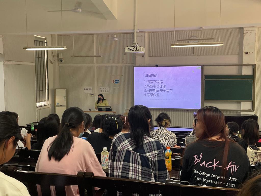 临近国庆假期,特召开主题班会,强调安全教育,提醒同学们时刻保持警惕,提高自我防护意识,确保人身安全。