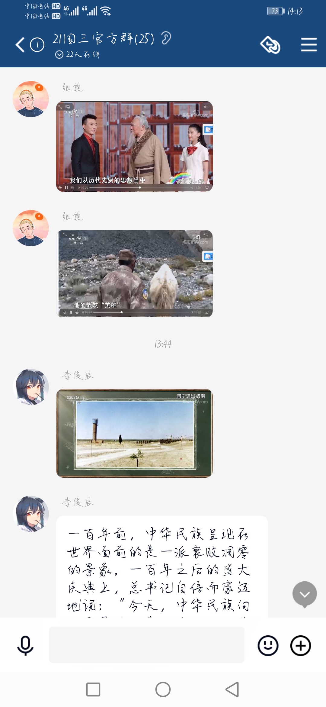新生线上入学教育期间曾老师和员工班主任组织大一新生观看《开学第一课》,学习七一重要讲话精神;在学习通平台上学习《老员工入学安全教育》,完成线上测试;观看纪录片《美术经典中的党史》,培养爱党爱国情怀;学习《员工手册》、《心理健康知识手册》和《老员工心理健康与发展》。