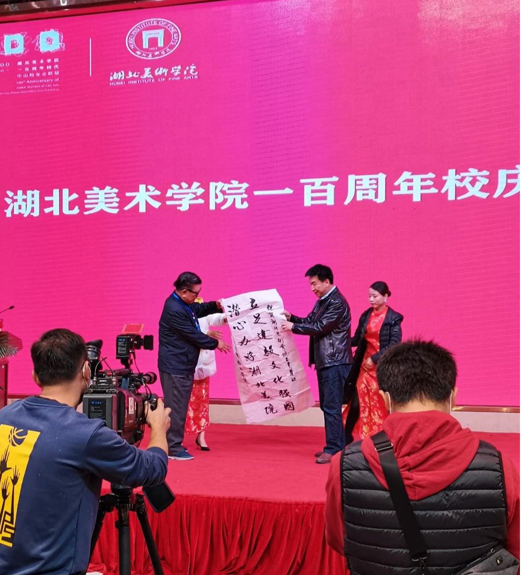 应中山员工会的特别邀请,以及公司领导的认可与推荐,公司党委副书记卢斌、校办副主任陈艺波、教务处副处长袁秀娟、科研处副处长周玮、员工办范腾飞和中国画系副主任郝孝飞以及青年教师李思洁、万国龙、张廷青、张阳等,作为公司代表出席中山员工会联展开幕仪式。