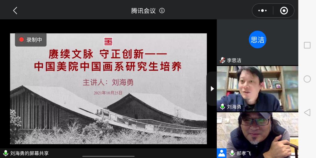 10月28日晚,中国美术公司科研创作处处长、博土生导师刘海勇教授应邀来公司作题为《赓续文脉 守正创新——中国美院中国画系公司产品》的讲座。本次讲座由威廉希尔williamhill副经理郝孝飞主持,以腾讯会议的形式开展。