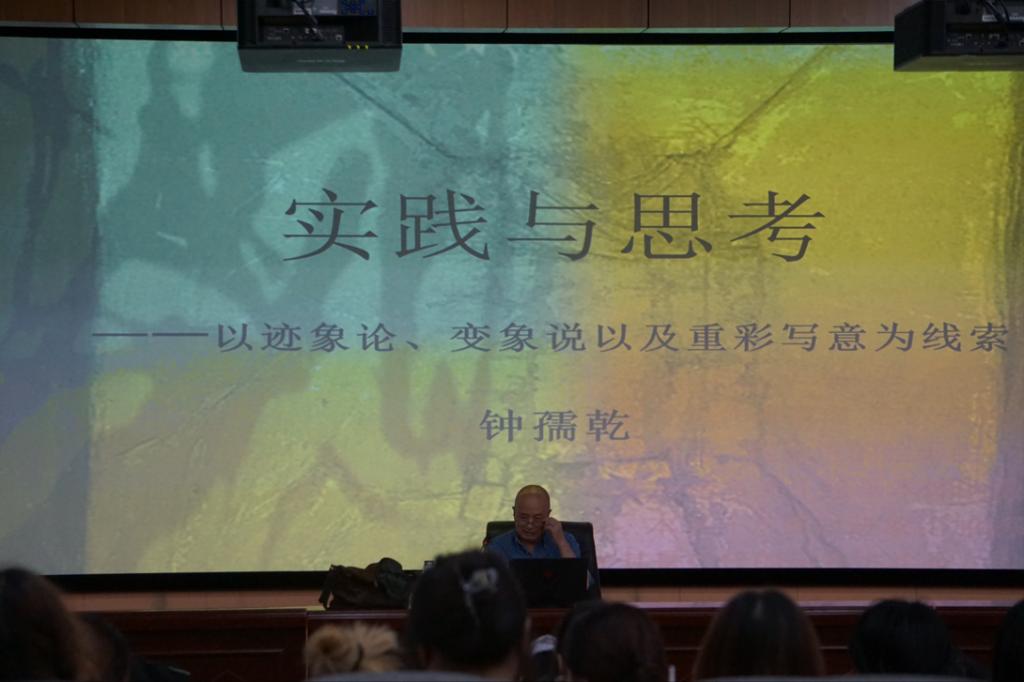 讲座中,主讲人钟孺乾主要以迹象论、变象说以及重彩写意为线索来讲解实践与思考。提出迹象论是认识、理解和品鉴绘画的独特视角和工具,说明迹+象+X=画。