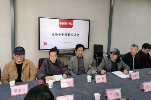 水墨人物画教研室主任周颢教授在发言中特别提出了书法教研室在人才培养、员工学业方面的优势和取得的成绩,同时也指出,国画专业因以书法为基础,也不乏书法人才,希望省书协关注这一群体。