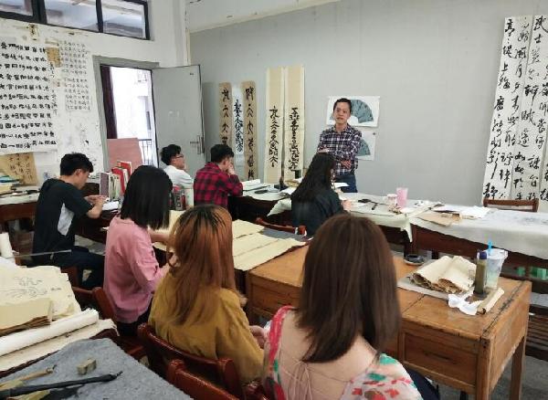 (通讯员,吴玉丹)2018年4月18日14时,在中国画系14级书法班教室举行了小型招聘会。辅导员于雨晴老师和一字文化传媒(武汉)有限公司的代表参加了此次的招聘会。